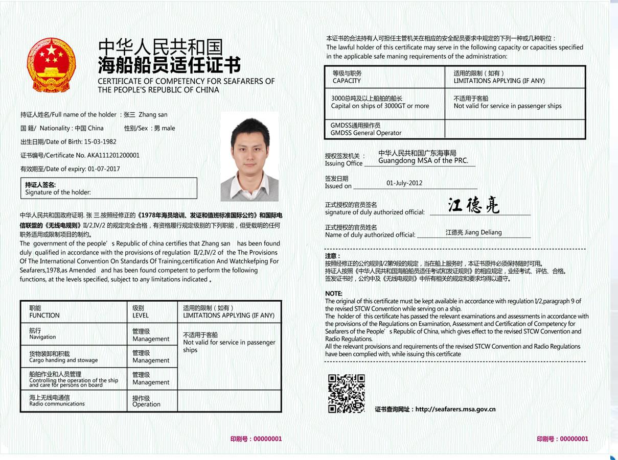 中華人民共和國(guó)海船船員適任證書(shū)